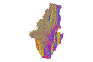 Description: Es un mapa de aspecto del terreno, que indica la orientación de cada forma. Este mapa fue derivado del Modelo Digital de Terreno - MDT con espaciado de malla de 0.50m.
